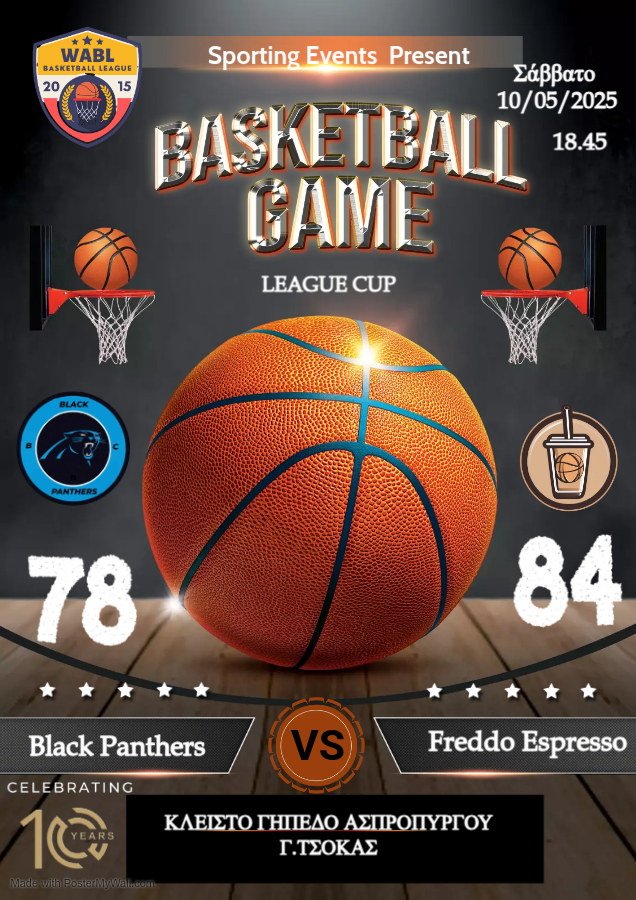 19.00 Ημιτελικός Β’ Freddo Espresso vs Φαράντος Ασφάλειες 70-74