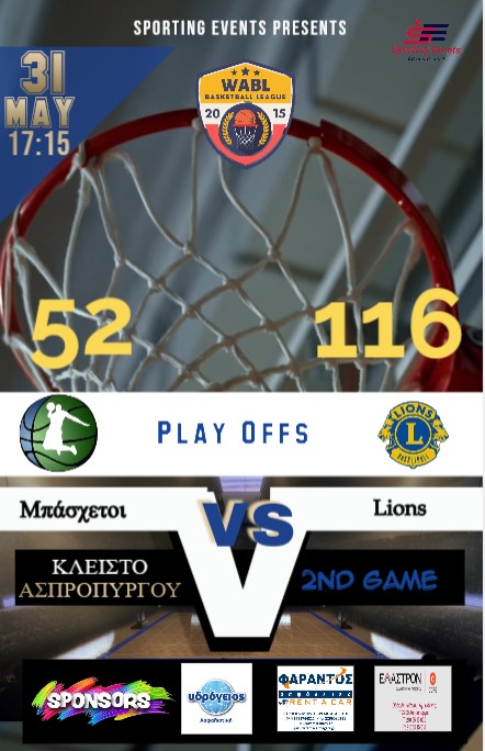 17:15 Μπάσχετοι vs Lions 52-116