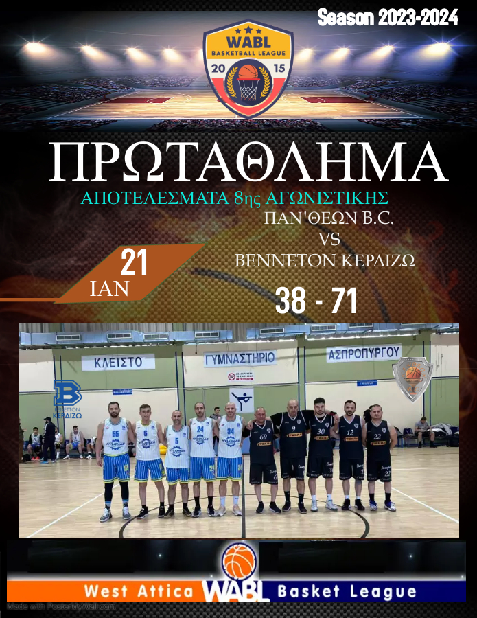 Δημοτικό Κλειστό Γυμναστήριο Μάνδρας Πάν’θεων B.C. - Benneton ΚερδίζωΑγωνιστικές: 7η Αγωνιστική