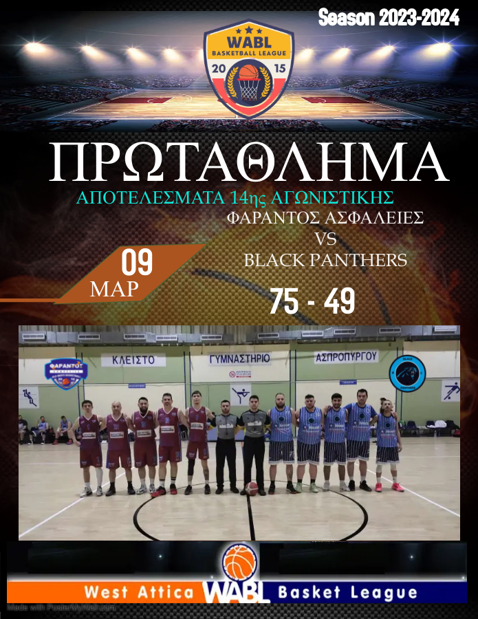 Δημοτικό Στάδιο Ασπροπύργου Τσοκας Γεώργιος Black Panthers - Φαράντος ΑσφάλειεςΑγωνιστικές: 3η Αγωνιστική
