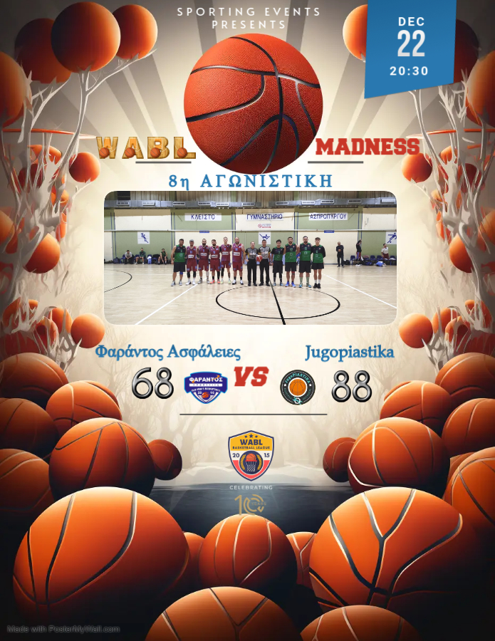 1ο Κλειστό Γυμναστήριο Ανδρέας Δασκαλάκης JUGOPIASTIKA - ΦΑΡΑΝΤΟΣ ΑΣΦΑΛΕΙΕΣΑγωνιστικές: 8η Αγωνιστική
