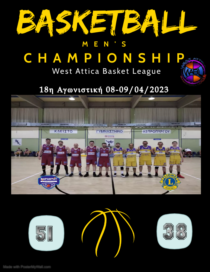 1ο Κλειστό Γυμναστήριο Ανδρέας Δασκαλάκης ΦΑΡΑΝΤΟΣ ΑΣΦΑΛΕΙΕΣ - LIONSΑγωνιστικές: 15η Αγωνιστική