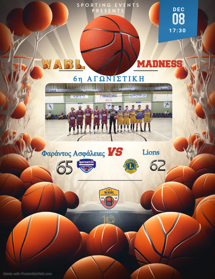 1ο Κλειστό Γυμναστήριο Ανδρέας Δασκαλάκης ΦΑΡΑΝΤΟΣ ΑΣΦΑΛΕΙΕΣ - LIONSΑγωνιστικές: 15η Αγωνιστική