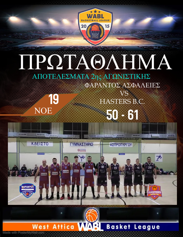 Δημοτικό Στάδιο Ασπροπύργου Τσοκας Γεώργιος Hasters B.C. - Φαράντος ΑσφάλειεςΑγωνιστικές: 6η Αγωνιστική