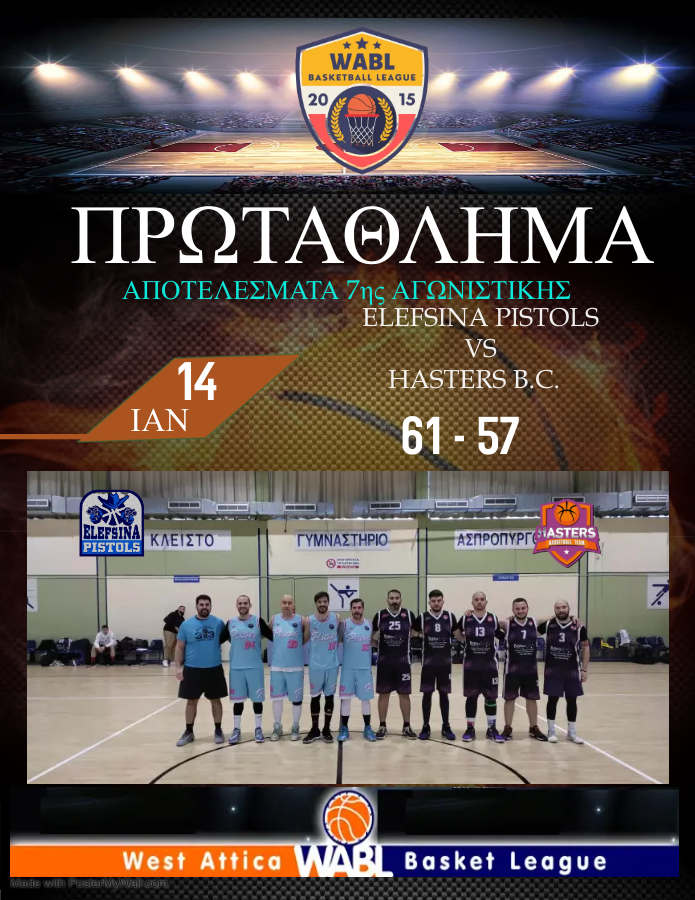 Δημοτικό Στάδιο Ασπροπύργου Τσοκας Γεώργιος Elefsina Pistols - Hasters B.C.Αγωνιστικές: 7η Αγωνιστική