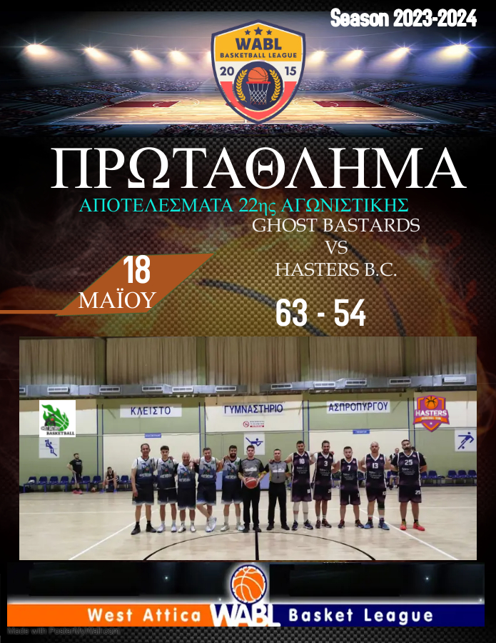 Δημοτικό Στάδιο Ασπροπύργου Τσοκας Γεώργιος Hasters B.C. - Ghost BastardsΑγωνιστικές: 11η Αγωνιστική