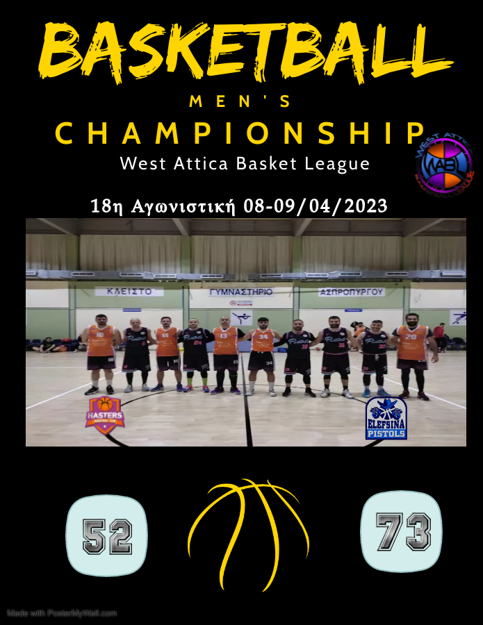 1ο Κλειστό Γυμναστήριο Ανδρέας Δασκαλάκης HASTERS B.C. - ELEFSINA PISTOLSΑγωνιστικές: 1η Φάση