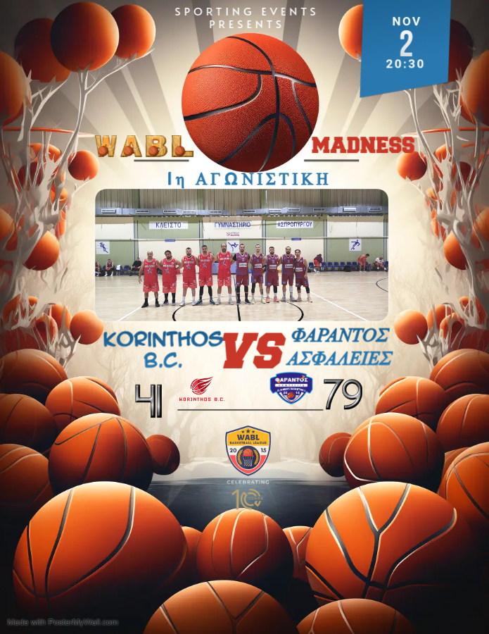 | Korinthos B.C. | 7 | 9 | 10 | 15 | 41 | Loss |
