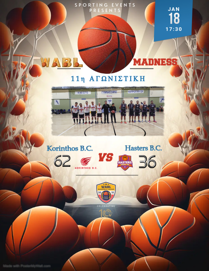 | Korinthos B.C. | 13 | 21 | 14 | 14 | 62 | Win |