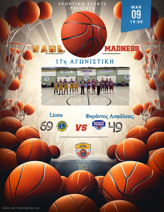 1ο Κλειστό Γυμναστήριο Ανδρέας Δασκαλάκης ΦΑΡΑΝΤΟΣ ΑΣΦΑΛΕΙΕΣ - LIONSΑγωνιστικές: 15η Αγωνιστική