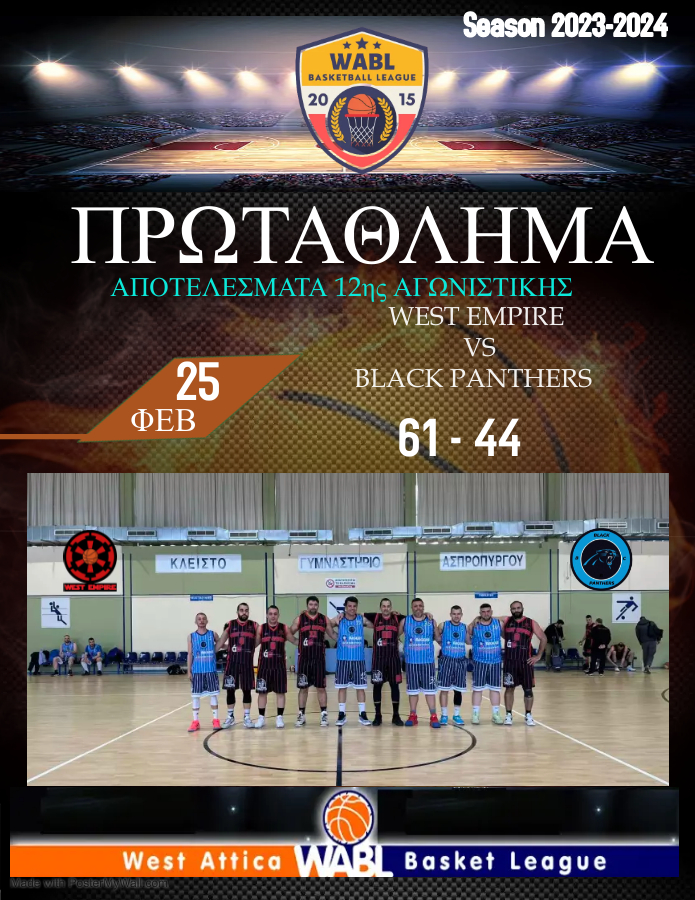 Δημοτικό Στάδιο Ασπροπύργου Τσοκας Γεώργιος Black Panthers - West EmpireΑγωνιστικές: 1η Αγωνιστική