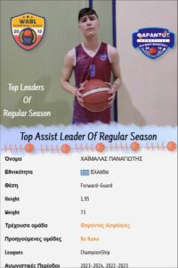 1ος στις Assist της Κανονικής Περιόδου Του Πρωταθλήματος West Attica BasketBall League της σεζόν 2024-2025 αναδείχθηκε