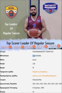 1ος Σκόρερ της Κανονικής Περιόδου Του Πρωταθλήματος West Attica BasketBall League της σεζόν 2024-2025 αναδείχθηκε