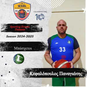 | 2024-2025 | Μπάσχετοι | 36 | 55 | 0 | 7 | 2 | 17 | 62 | 27.419 | 3 | 22 | 13.636 | 12 | 23 | 52.174 | 12 | 24 | 6 | 15 | 6 | 5 | 7.2 | 0.0 | 1.4 | 0.4 | 9.2 | 48 |