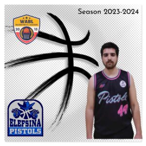| 2023-2024 | Elefsina Pistols | 10 | 25 | 4 | 4 | 1 | 9 | 18 | 50.000 | 2 | 11 | 18.182 | 1 | 4 | 25.000 | 5 | 5 | 3 | 8 | 5 | 0 | 0 | 0 | 0 | 0 | 5.0 | 29 |