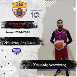 | 2024-2025 | Φαράντος Ασφάλειες | 95 | 44 | 22 | 10 | 0 | 20 | 38 | 52.632 | 0 | 3 | 0.000 | 4 | 11 | 36.364 | 15 | 80 | 21 | 27 | 17 | 3 | 31.7 | 7.3 | 3.3 | 0.0 | 2.6 | 131 |