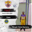 | 6 | ![]() ΤΡΙΑΝΤΑΦΥΛΛΟΣ ΑΛΕΞΙΟΣ | Lions | Forward-Center | 11 Ιανουαρίου, 2022 | 4 | 49 | 5 | 3 | 0 | 23 | 180 | 0 | 5 | 3 | 6 | 7 | 32 | 9 | 20 |